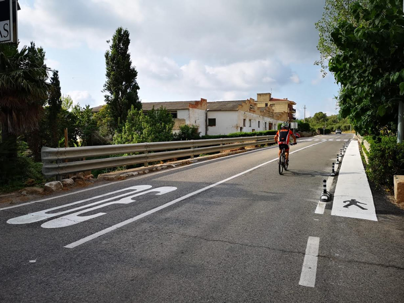 Els treballs han consistit en pintar i delimitar un carril de vianants a la banda dreta, en sentit de sortida del poble, el lloc natural per on ja transitaven els veïns per arribar a casa seva. Aquest pas s’ha eixamplat i això ha comportat que s’hagin d’estrènyer uns centímetres els carrils de circulació. A més, s’ha pintat un pas de vianants d’un costat a l’altre de la carretera, s’han incorporat unes limitacions de velocitats físiques que són uns coixinets elevadors en un dels punts més conflictius; també s’han instal·lat unes senyals verticals amb el fons fluorescent d’alta visibilitat, durant el dia i la nit, que limiten la velocitat dels vehicles a 30km/h, tal com marca la normativa. I per altra banda, s’ha col·locat uns delimitadors que separen físicament els dos carrils, el de circulació i el de vianants per tal que no es pugui envair el carril contrari.